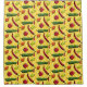 A peri-peri, friggitello, habanero, rocoto, jwala, and shishito chili pepper are decorated with patterns from the region where they were originally cultivated or are commonly eaten and sit on a yellow background with patterns inspired by tattoos worn by native peoples in the Amazon to create a fun repeating pattern that reflects the origins and spread of these tasty, and often spicy fruits.