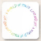The words "A world of peace, love and joy" in colours of the rainbow. World peace begins with each of us. Art of artist Margaret Loftin Whiting.