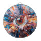 A vibrant and surreal depiction focuses on a highly detailed eye surrounded by an explosion of abstract and colourful elements. The composition features a blend of feathers, organic shapes, and bursts of colour radiating outward, creating a dynamic and captivating scene. Digital Art Photoshop CS5
