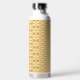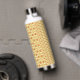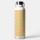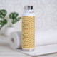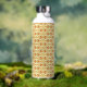 a yellow and white background with an intricate de water bottle