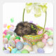 A Yorkie-poo puppy encountering an Easter basket Square Sticker