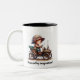 A Young Happy Child Riding a Steampunk Vehicle Two-Tone Coffee Mug