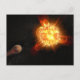 Illustration of a young red dwarf stripping the atmosphere from an orbiting planet. Violent outbursts of seething gas from young red dwarf stars may make conditions uninhabitable on fledgling planets.