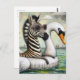 A Zebra on Vacation in a Floating Swan Postcard
