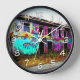 Urban destruction abandoned house with colourful spray paint graffiti on it. House with broken windows and open doors. Beauty in destruction. Lost spaces or post apocalyptic AI generated artwork.
