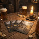 These poker-size playing cards feature the Abandoned Port pirate harbor scene as a custom card back design, paired with a coordinated tuck box. The artwork leans into atmosphere and texture rather than spectacle—creating a deck that feels grounded, cinematic, and intentionally restrained.