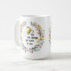 Commencez la journée par le bon pied et par une pensée motivante chaque fois que vous utilisez cette belle tasse à café en couronne de fleur sauvage qui comporte également un gribouillage d'abeilles avec un message inspirant : "abattez le changement que vous voulez voir".