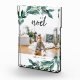 Le feuillage vert peint à la main encadre votre photo verticale ou orientée portrait, avec "Noel" en haut en lettrage manuel moderne. Personnalisez avec votre légende personnalisée en dessous pour une tenue de vacances douce que vous voudrez afficher année après année.