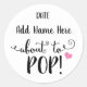 About to POP baby shower stickers. Features phrase "About to POP" in the text colour of choice. You can the colour for background, phrase, heart, name, and date