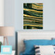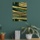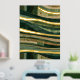 A poster with real gold foil on an abstract painting with lines in forest green and sand tones.