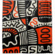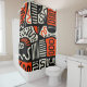 A bold original hand drawn abstract design in black, orange red, and cream.