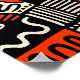 A bold original hand drawn abstract design in black, orange red, and cream.