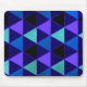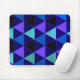 Geometric design by Ron Trickett in light purple, light blue, navy blue and light green. Triangle pattern