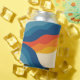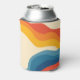 Abstract 70s Retro Orange Blue Wavy Stripe Pattern Can Cooler