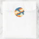 Abstract 70s Retro Orange Blue Wavy Stripe Pattern Classic Round Sticker