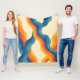 Abstract 70s Retro Orange Blue Wavy Stripe Pattern Fleece Blanket