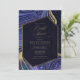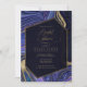 You get both glamour and high impact with this coordinating wedding set that features abstract agate patterns, textured with faux-crystals and highlights in glittering faux gold foil. Striking colour combinations, like this suite with it's night-sky palette from deep midnight blue to soft violet, create the background for the pieces in this coordinated collection. This elegant Bridal Shower invitation features all the above with a hexagon, semi-transparent label in dark navy blue to hold your text. A template is provided to easily add your event details. View the collection link on this page to see all of the matching items in this beautiful design or search ID827 to see additional colour choices for this design.