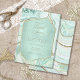 You get both glamour and high impact with this coordinating wedding set that features abstract agate patterns, textured with faux-crystals and highlights in glittering faux gold foil. Striking colour combinations, like this suite with it's soft pastel palette from mint green to teal blue, create the background for the pieces in this coordinated collection. This elegant Bridal Shower invitation features all the above with a hexagon, semi-transparent label in mint green to hold your text. A template is provided to easily add your event details. View the collection link on this page to see all of the matching items in this beautiful design or search ID827 to see additional colour choices for this design.