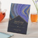 You get both glamour and high impact with this coordinating wedding set that features abstract agate patterns, textured with faux-crystals and highlights in glittering faux gold foil. Striking colour combinations, like this suite with it's night-sky palette from deep midnight blue to soft violet, create the background for the pieces in this coordinated set. This 'Sanitizing Station' sign features all the above plus elegant calligraphy and a template to easily add your names, message and wedding date. View the collection link on this page to see all of the matching items in this beautiful design or search ID827 to see additional colour choices.