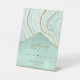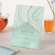 You get both glamour and high impact with this coordinating wedding set that features abstract agate patterns, textured with faux-crystals and highlights in glittering faux gold foil. Striking colour combinations, like this suite with it's soft pastel palette from mint green to teal blue, create the background for the pieces in this coordinated set. This 'Sanitizing Station' sign features all the above plus elegant calligraphy and a template to easily add your names, message and wedding date. View the collection link on this page to see all of the matching items in this beautiful design or search ID827 to see additional colour choices.
