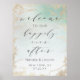 Ombre Teal Aqua Frosted Foil Watercolor Wedding Design with hand painted watercolor wash fading Mint Green to white background texture. A Chic and Modern Look for a spring or summer wedding, with soft pastel colour palette : Teal, Aqua, Mint and gold faux foil veins and details, and a modern trendy brush Script lettering Font - Personalized Wedding Reception Welcome to our Happily Ever After Sign!
