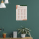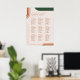 Modern boho wedding seating chart sign with arch shapes in terracotta, rust, burnt orange, and dark green, emerald tones.