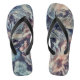 Abstract art brush textured roses print blue beige flip flops