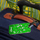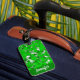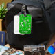 Custom luggage tags with green foliage pattern.