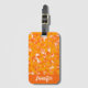 Custom luggage tags with orange foliage pattern.