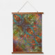 The polyester fabric displayed many wrinkles and several sharp creases throughout. At the bottom of the tapestry, I noticed a bulge in the fabric because it was not pulled tight enough before being connected to the wooden boards. It took me over an hour to spay water on the tapestry before putting it on an ironing board where I used a warm iron over a polyester cloth to remove the wrinkles and creases in the material. I was able to get out the wrinkles and creases that made that tapestry look as beautiful as its picture.