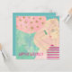 A simplistic line drawing female face and elegant hand against her forehead on an abstract pattern in a mix of pinks, beige and teal. A very stylish way to send your birthday greetings. Easily personalise the greeting on the front and back, and if you wish to change the font or text colour you can do so via the Click to Customize Further option.