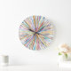 Abstract art in a multi-color burst design displays well on these wall clocks available in 2 sizes- square and round.