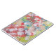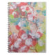 Floral-like abstract art with red, light green, turquoise, peach and white colours, created as mixed media artwork makes this notebook cover a delight to use for any occasion.
