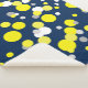 Beautiful And Stylish Abstract Art Various Shades of Yellow Balls / Dots Painting Throw Blanket to add to your home / office / business décor collection. A cool present / gift idea for all who love custom design unique items, positive vibes, art, geometry, organic theme etc. Change the background colour (blue) to suit your taste and style. Yellow, white, grey.