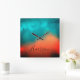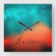 Abstract Art Script Name Blue Teal Orange Square Wall Clock