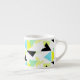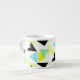 Happy Bright Colours Abstract Art Triangles Pyramids Pattern Word Coffee Espresso Mug / Cup to add to your home / office / business drinkware collection. A cool gift / present option for all who love custom design unique items, positive vibes, geometry, different forms and shapes, colour therapy, cheerful things in life. Yellow, grey, green, beige, turquoise, black, white. Change the pink background colour to suit your needs and style.