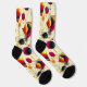 Unleash your creative side with these abstract artistic socks, featuring vibrant accents in pink, navy, and orange. The dynamic design includes bold circular patterns, sweeping geometric lines, and expressive brushstrokes on a cream background. Perfect for art enthusiasts and fashion-forward individuals, these socks add an energetic and modern touch to any outfit.