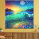 Dive into serenity with this surreal seascape, where a mesmerizing sunset collides with opal and jade hues, creating a unique blend of tranquility for your space.