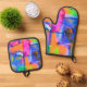 Abstract Background Colorful Oven Mitt & Pot Holder Set
