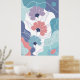 Abstract background design with flowers in lavender, peach, and blue in the centre. Suitable for hanging in any room that needs a beautiful touch of colour.