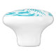 This ceramic knob features a white hand-drawn sea shell over a turquoise cyan blue background. The background colour can be changed to match your decor. Perfect accent for a seaside retreat.