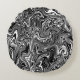 Abstract Black and White Liquid Marble Round Pillow