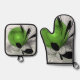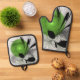 Abstract Black and White with Green Fractal Art Oven Mitt & Pot Holder Set
