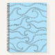 Abstract black line art drawing of waves of the sea on a light blue background. Choose from sketchbook, bullet journal, checklist, graph paper, recipe book, or lines in various widths and colours.  Also choose a spine colour to further customize your notebook look.