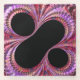 This glass coaster features a beautiful fractal art in red, blush pink, and purple with black percent sign.