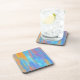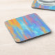 Brosse acrylique peinte en gros traits en bleu, turquoise, jaune et orange.