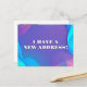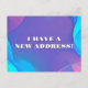 Blue and pink waves surround a purple centre on this abstract change of address postcard.