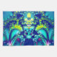 Abstract kitchen towel featuring fractal art in vibrant colours: blue, cyan, neon green, and purple.