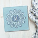 A blue flower design with a custom initial in the centre which you can easily personalize with your own.