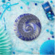 This beautiful round paper plate features an abstract spiral fractal design in white, grey, and blue shades.